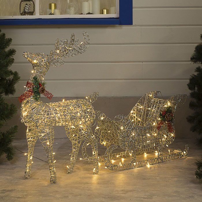 Световая фигура Олень с санями, 750 мм