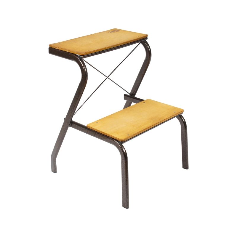Стремянка с двумя ступенями занимает не много места, прочный металлокаркас выдерживает до 150 кг. Подходит для использования в школах, детских садах, библиотеках.