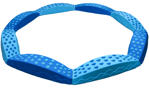 Дорожка состоит из 8 деталей, которые соединяются в кольцо. Мягкие выпуклости помогают избежать скольжения и усиливают сенсорную стимуляцию. Различная кривизна положения пандуса укрепляет стопы.