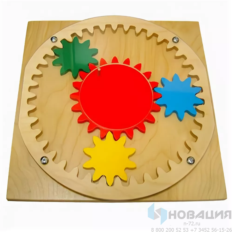 На панели расположены разноцветные шестеренки. Развивает ловкость, воображение, координацию движений и мелкую моторику, а также может использоваться в качестве дидактического материала для изучения цветов.