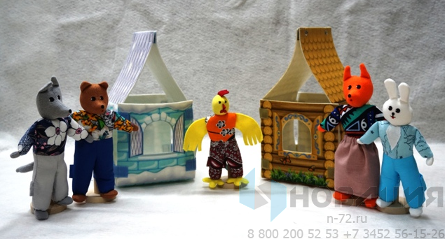- 5 кукол: медведь, заяц, петух, волк, лиса.