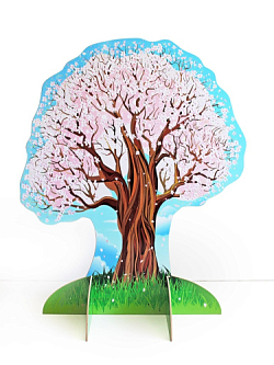 Полноцветная декорация изготовлена в виде цифры 8, украшенной цветами. Предназначена для оформления сцены к праздничным мероприятиям, посвященным празднику 8 марта.