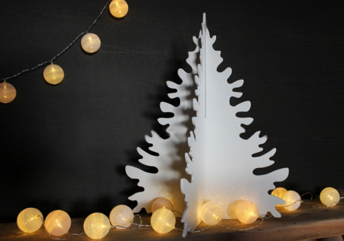 Однотонная декорация в виде елки с резными ветками предназначена для оформления сцены к спектаклям и новогодним праздникам. Состоит из двух частей, которые вставляются друг в друга. Легко собирается и разбирается.