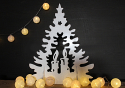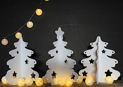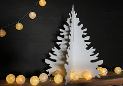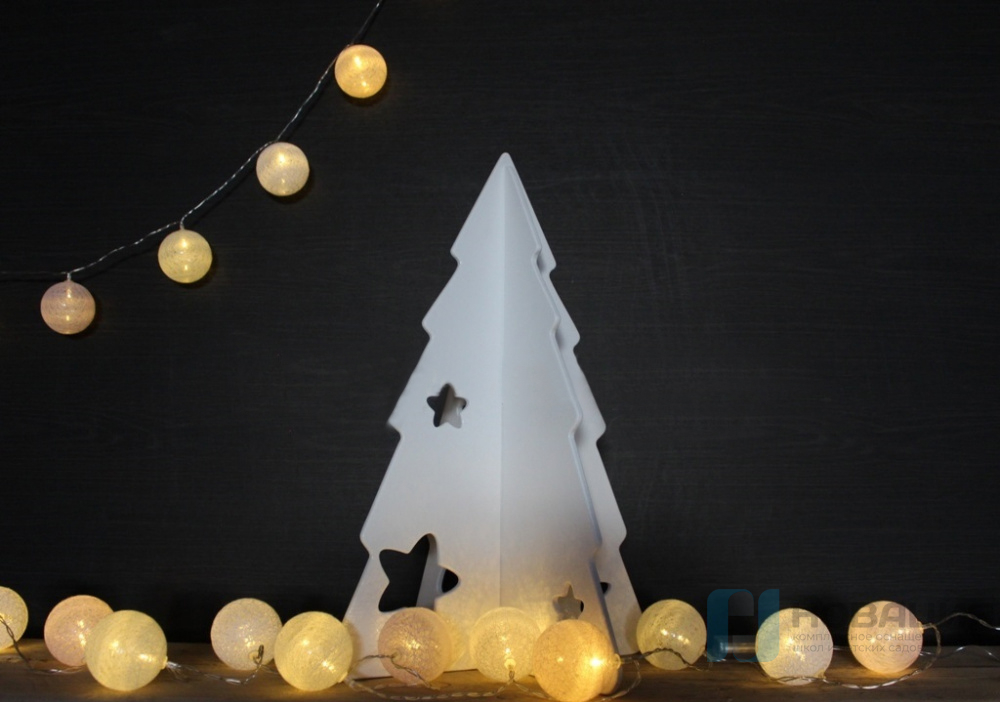 Однотонная декорация в виде елки предназначена для проведения спектаклей и новогодних праздников. Состоит из двух частей, которые вставляются друг в друга. Легко собирается и разбирается.