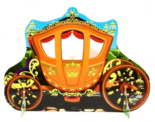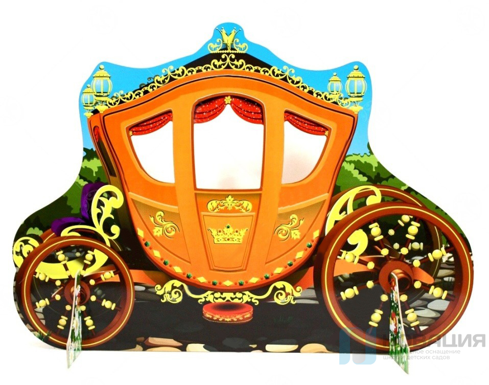 На декорацию нанесено цветное двустороннее изображение кареты. Предназначена для оформления сцены для спектаклей и праздников.