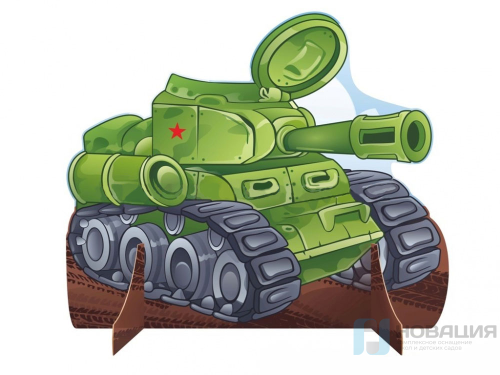Двусторонняя декорация с цветным изображением танка предназначена для оформления сцены к праздничным мероприятиям и сценическим представлениям, посвященным Дню Победы и Дню защитника Отечества.