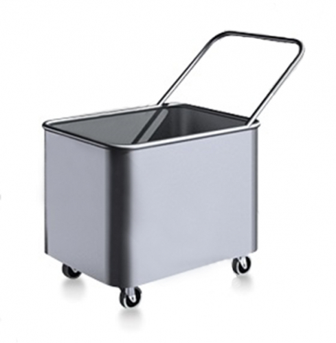 Тележка грузоподъемностью 60 кг позволяет перевозить белье в прачечной. Короб объемом 100 л установлен на 4 поворотных колеса d 75 мм и дополнен ручкой. Все углы конструкции сглажены.