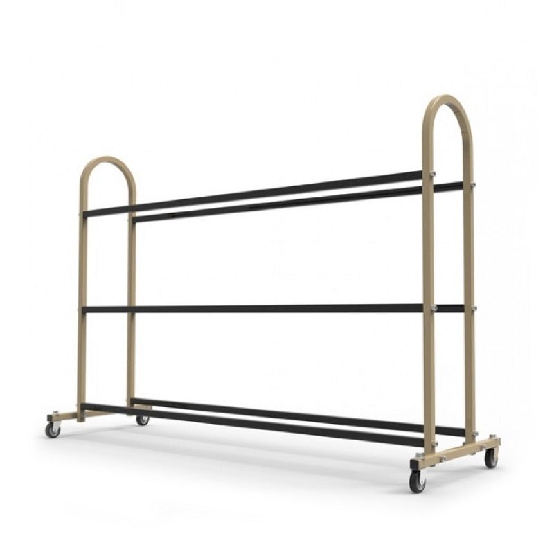 Сборная конструкция на роликовых опорах оснащается корзинами из профильной трубы. Дугообразные боковые элементы помогают перемещать тележку.