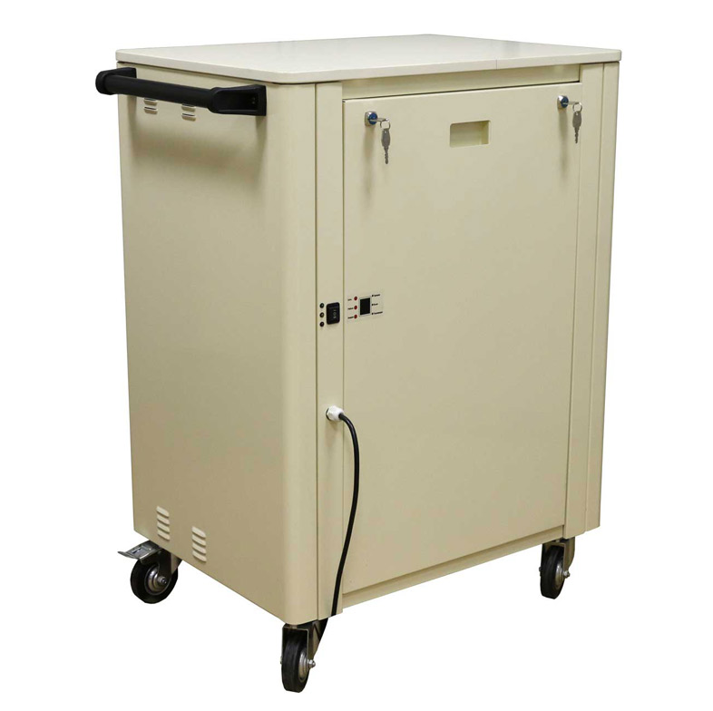 Представляет собой мобильный металлический шкаф, оборудованный поворотными колесами (2 из которых со стопором). Внутри корпуса располагаются четыре полки с пластиковыми ложементами для размещения планшетов (с ячейкой 25 мм). Средние и верхняя полки могут регулироваться по высоте, в зависимости от размера планшета.