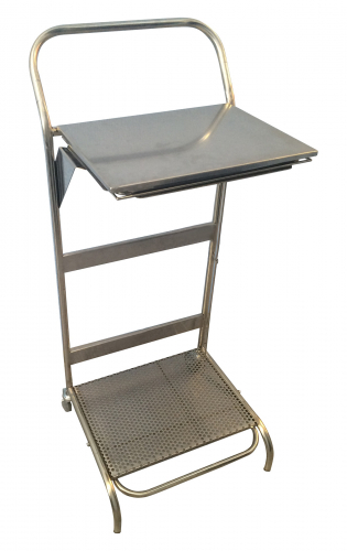 Тележка на каркасе из труб подходит для сбора отходов. Оснащена откидной крышкой и педалью, между которыми закрепляется мешок. Сверху предусмотрена 1 ручка. Под нижней площадкой 2 стационарных упора и 2 колеса, d 75 мм.
