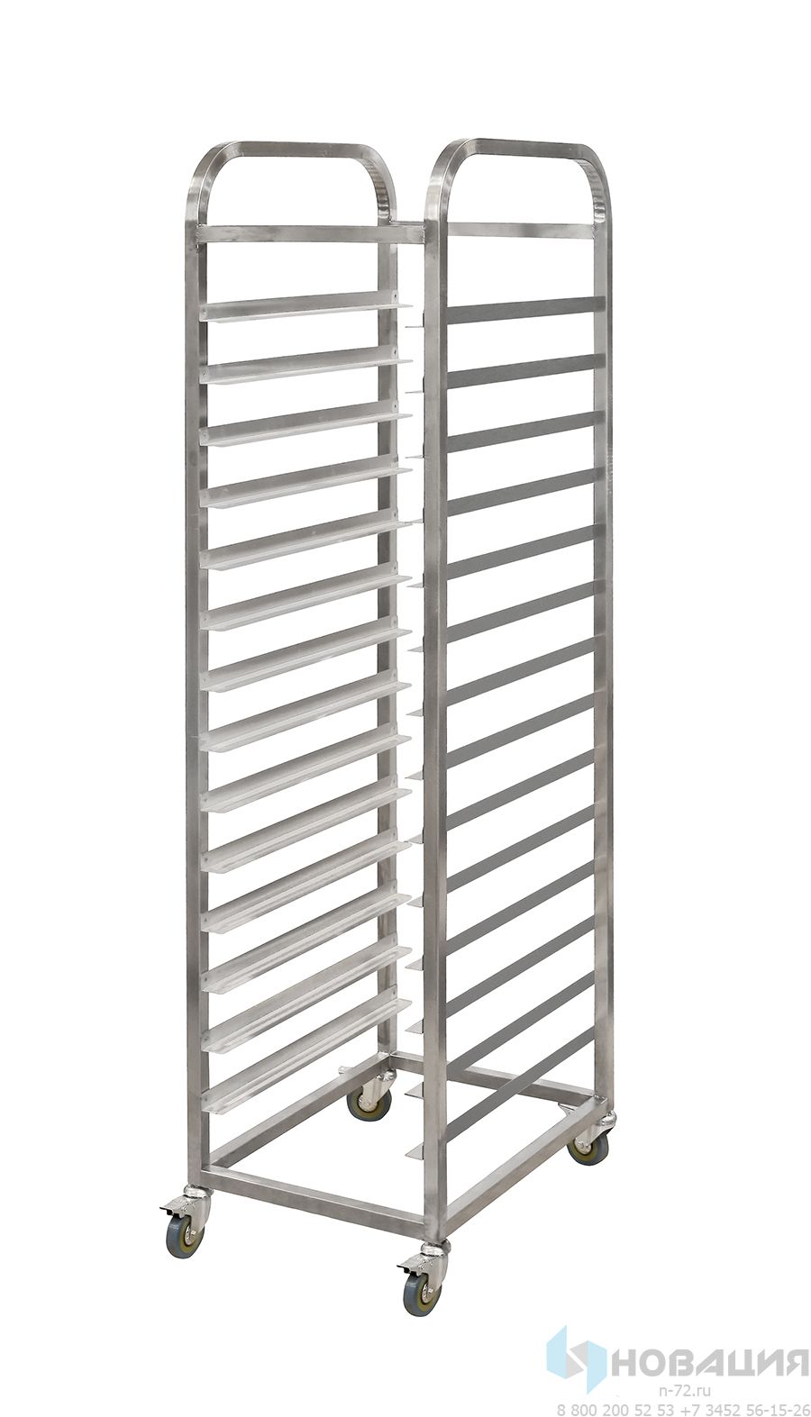 Конструкция движется благодаря 4-м колесам, d 100 мм. Каркас изготавливается из профильной трубы, оснащается направляющими из нержавеющей стали. Противни приобретаются отдельно.