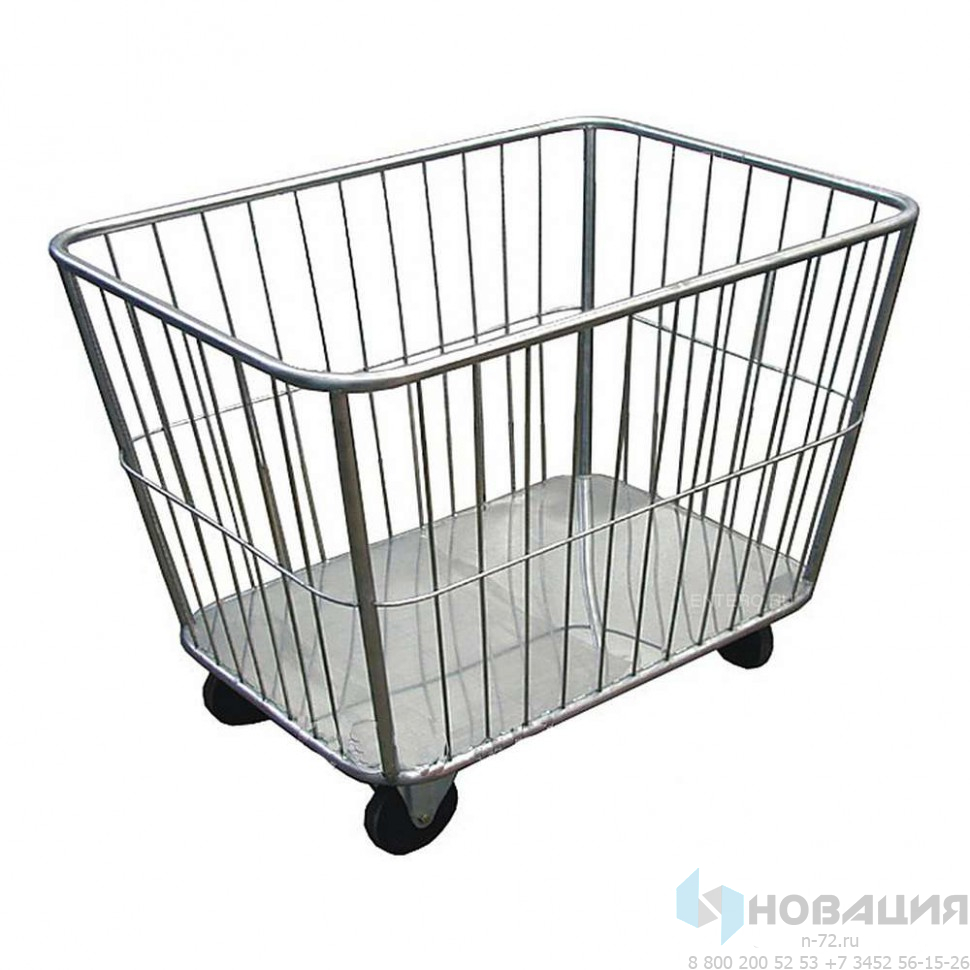 Оборудование позволяет перевозить спальные или кухонные принадлежности. Короб с сетчатыми стенками и окантовкой в форме трубы установлен на 4 колеса.