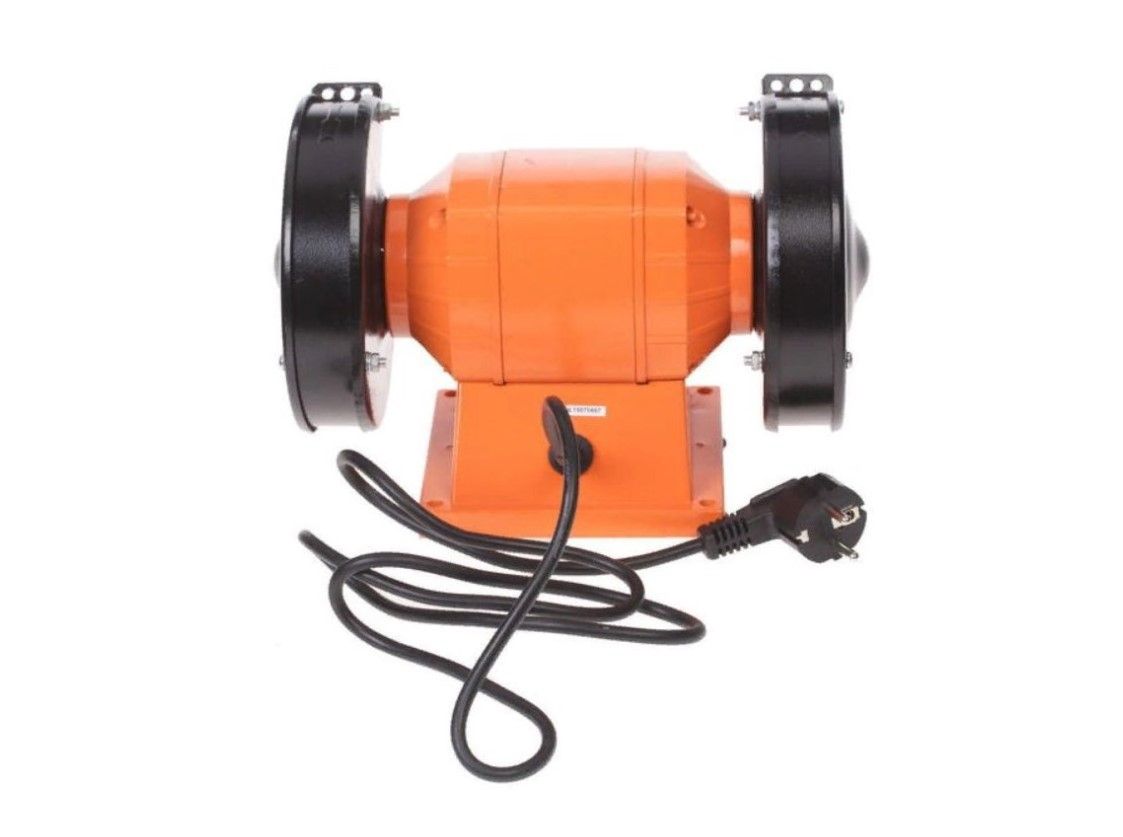 Установка работает от сети. В составе конструкции 2 абразивных круга с различной зернистостью. Станок правит и затачивает строительный инструмент, обрабатывает сварные швы и заусенцы металлических изделий.