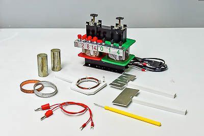 Назначение: знакомство с действием повышающего и понижающего трансформатора; изучение режима холостого хода; эксперименты с лампочкой, цилиндрами, металлическими предметами, катушкой-мотком, магнитной стрелкой.