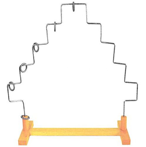 Изделие для воспитанников детского сада представляет собой деревянную подставку с дугой из ступенчатого стержня. По металлическим выступам перемещаются кольца. Упражнения развивают мышцы верхней конечности.