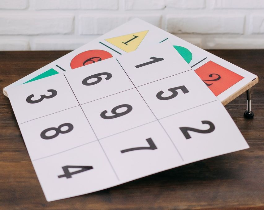 - 2 сменные поверхности для упражнений с мишенью (магнитная основа, цветные цифры и круги);