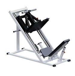 Предназначен для тренировки мышц бедер. Конструкция состоит из корпуса, обрезиненных плит, сиденья со спинкой и упоров для ног. Нагрузка регулируется при помощи фиксатора - металлической иглы. Грузы приводятся в движение посредством троса.