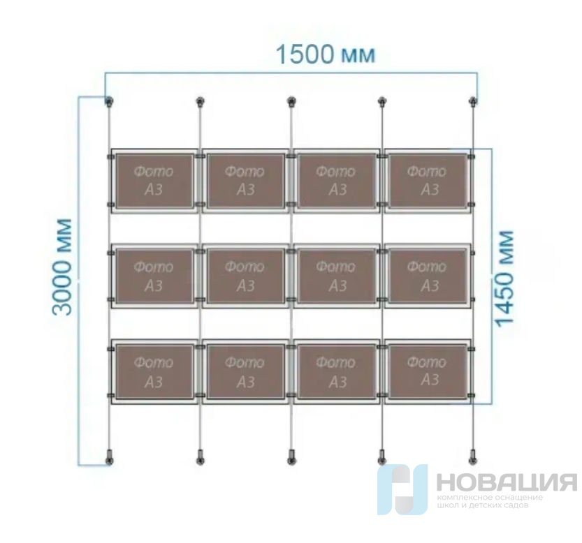 - 12 карманов - ДхШ 3000х1500 мм, 12 планшетов (А3) горизонтальных.