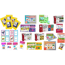 В комплекте: игры, карточки, конструктор, плакаты, бизиборды, дидактические пособия.