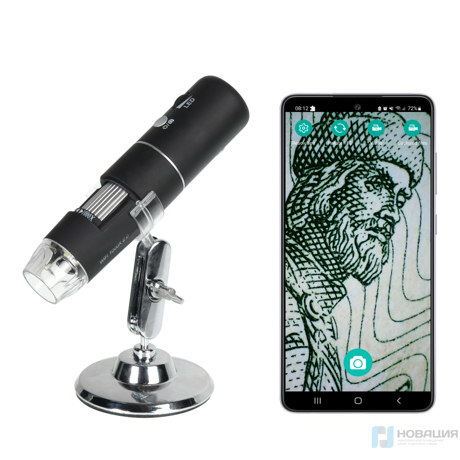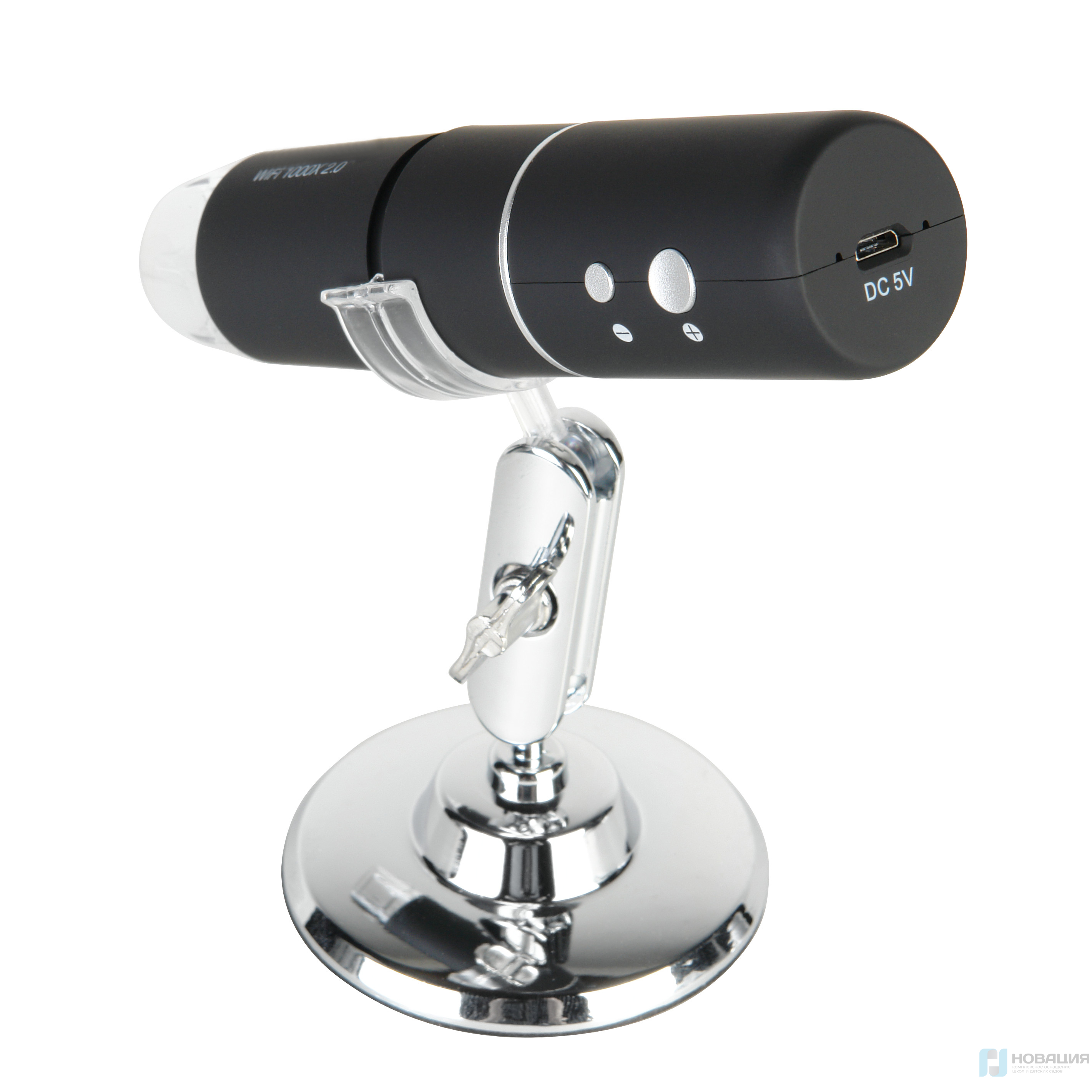 Микроскоп предназначен для лабораторных исследований. Подключается к смартфону при помощи Wi-Fi, к компьютеру - через USB 2.0. Оснащен встроенным аккумулятором 780 мАч, который обеспечивает до 2-х часов непрерывной работы без подзарядки.