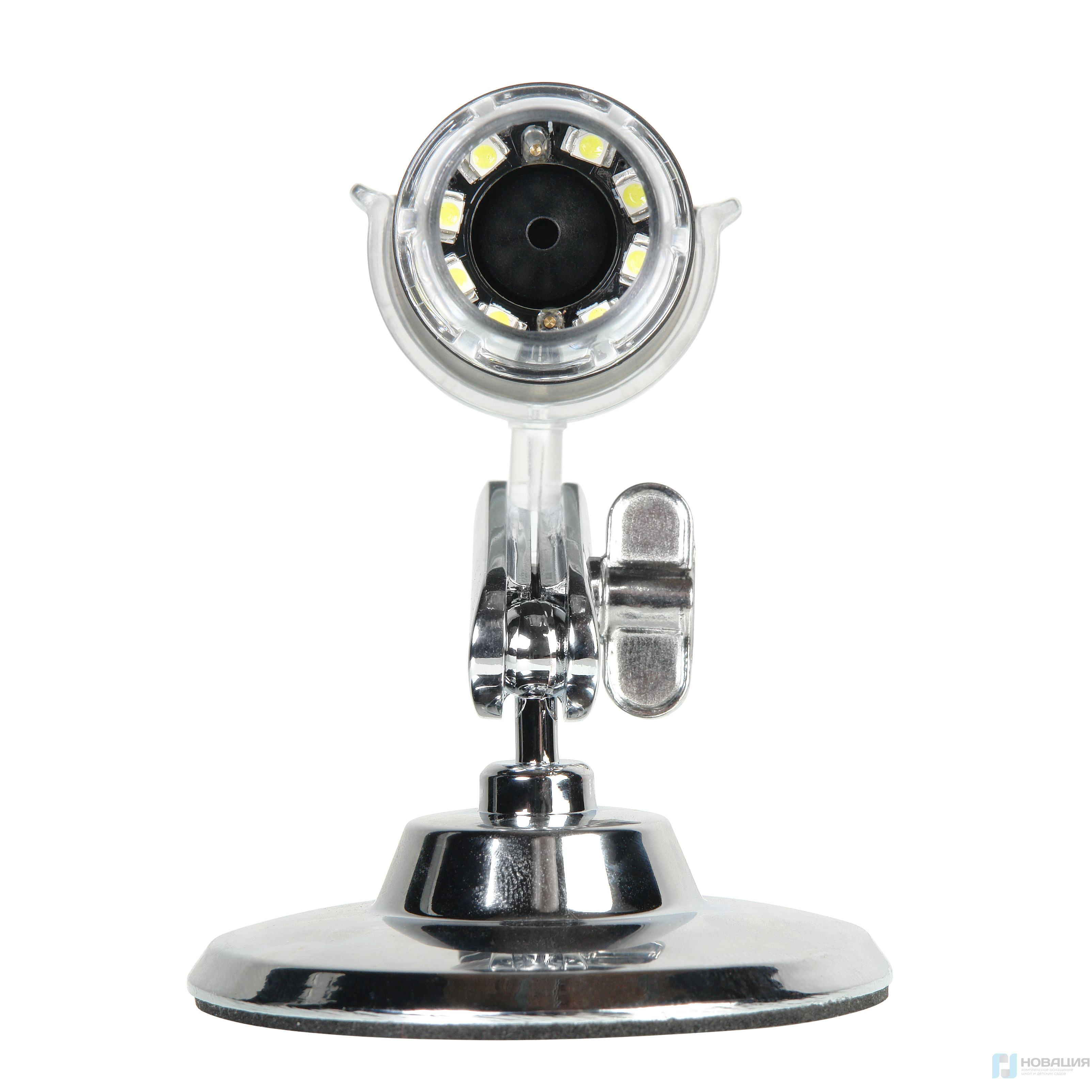 Позволяет снимать фото в формате JPEG и видео в формате MP4. В качестве источника света используются 8 светодиодов с регулируемой яркостью. Положение штатива регулируется.