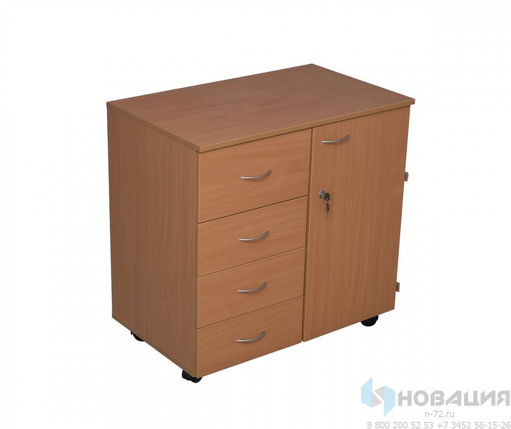 Тумба на колесных опорах оснащается подставками под нитки и ящиками. Специальная мебель используется в школьном кабинете домоводства и технологии. В тумбе размещаются швейные принадлежности и фурнитура, малогабаритная швейная техника.