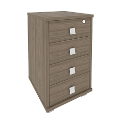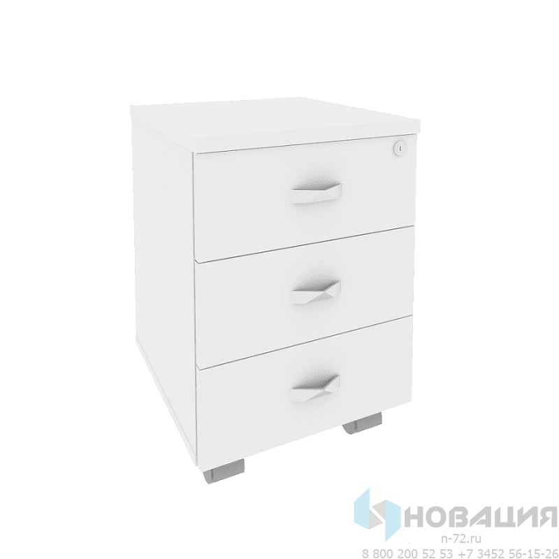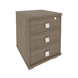 Офисная тумба, оснащенная 3-мя выдвижными ящиками с фурнитурой, легко переставляется, образуя композицию с другой мебелью. Верхний ящик запирается при помощи ключа. Опоры с пластиковыми элементами и винтами регулируются по высоте. Топ и фасады ящиков из ЛДСП отделаны кромками толщиной 0,4 мм и 2 мм.