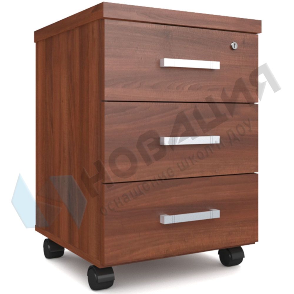 Тумба на колёсах оснащена 3-мя выдвижными ящиками (на роликовых направляющих, L 400 мм). Верхний ящик запирается на замок. Подкатная тумба подходит для кабинета руководителя в школе, детском саду и других учреждениях. Предназначена для использования с офисными столами или без них. Дополнена всей необходимой фурнитурой, включая удобные металлические ручки.