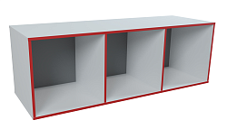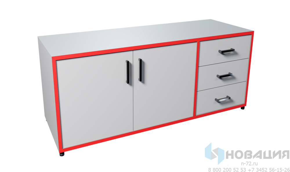 Тумба для проекта "ТР" оснащается 3-мя ящиками на роликовых направляющих (L 350 мм) и 1 съемной полкой, скрытой за распашными фасадами. Дно ящика изготавливается из ХДФ. Ящики и дверцы оснащаются фурнитурой. Изделие поставляется в белом цвете, кромки корпуса на лицевой стороне красные. Возможно изготовление мебели по индивидуальному заказу.