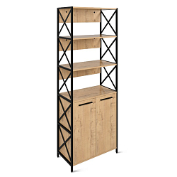 Тумба оснащена слайдерной дверью и двумя открытыми полками. Лаконичный дизайн мебели подойдет для любого интерьера.