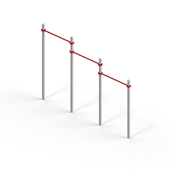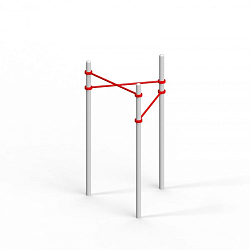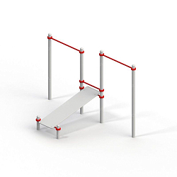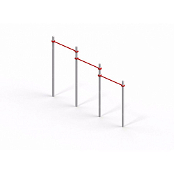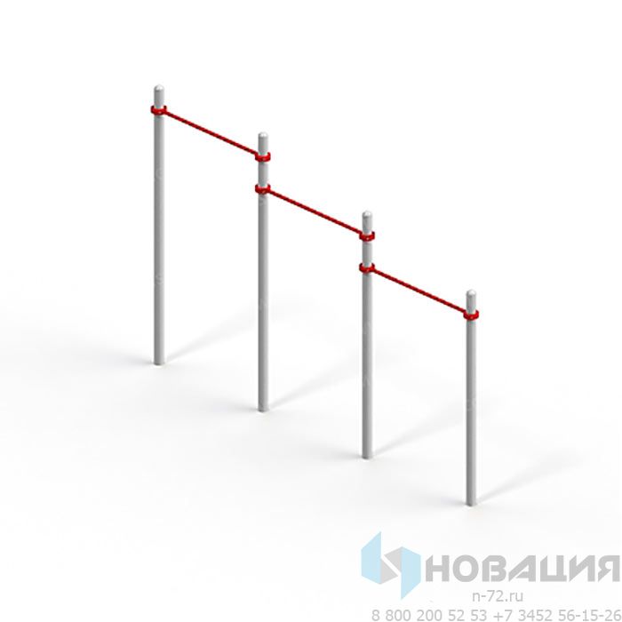 Турник состоит из 4-х стоек и 3-х перекладин с хомутами. Оборудование для воркаута позволяют укрепить мышцы рук, спины и пресса. Горизонтальные трубы (d 33 мм) фиксируются на высоте 1500 мм, 1800 мм, 2100 мм.