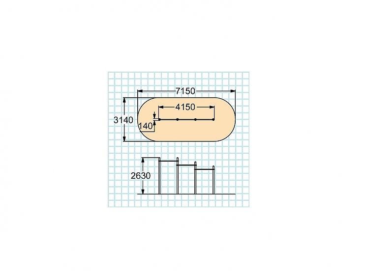 Материал: металл (d стойки 88 мм, d перекладины 33 мм), фанера (толщина 21 мм).