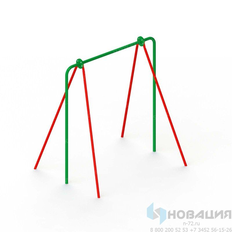 Спортивное оборудование включает в себя 2 боковые стойки, 2 осевых тяжа, 2 продольных тяжа, 4 раскоса, которые фланцевыми соединениями прикрепляются к балке, и поперечную перекладину.