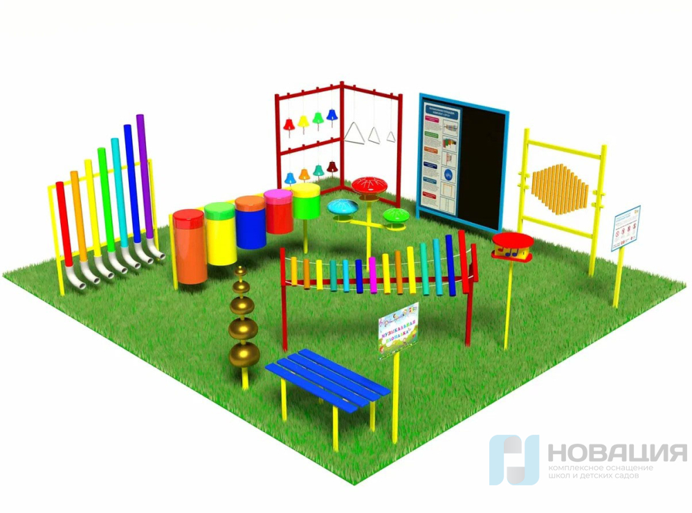 Игровой комплекс размещается на уличной территории. Занятия с оборудованием помогают детям (в том числе, имеющим ОВЗ) получить представление о творчестве. Площадка знакомит с музыкальными инструментами, нотами, ритмами, позволяет стать авторами спектакля, нарисовать пейзаж.