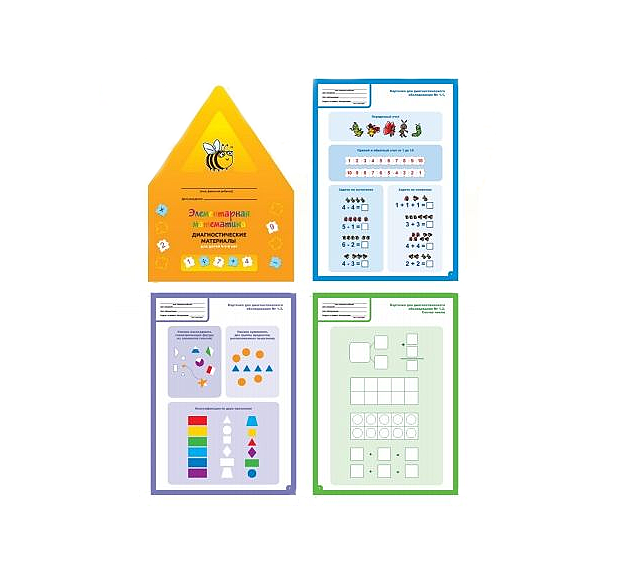 - 3 набора рабочих карточек (темы: пространство и время, доцифровая математика, знакомство с цифрой);