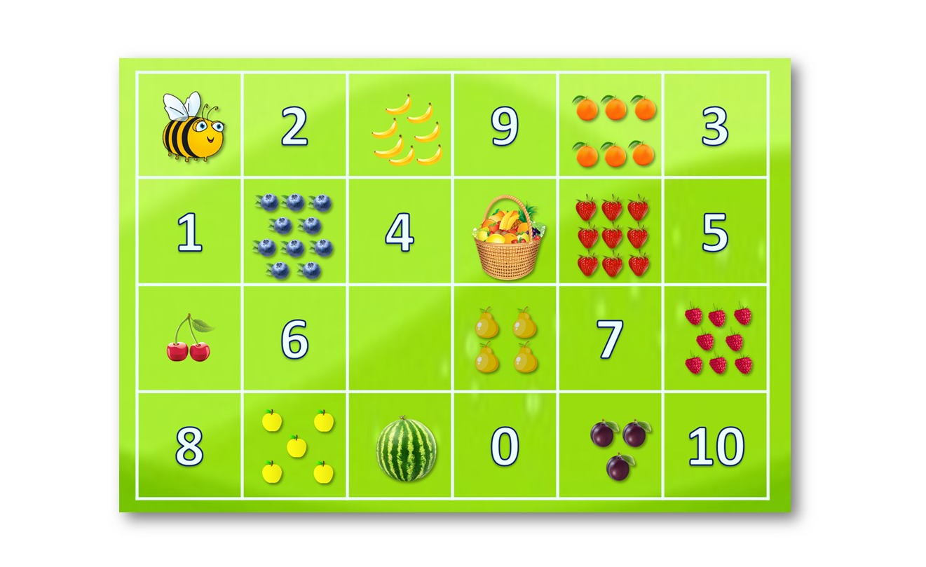 - 3 игровых поля (2-сторонние, тематика: телефон/ цветные линии, точки/ фрукты и цифры, цифры и формы/ геометрические фигуры);