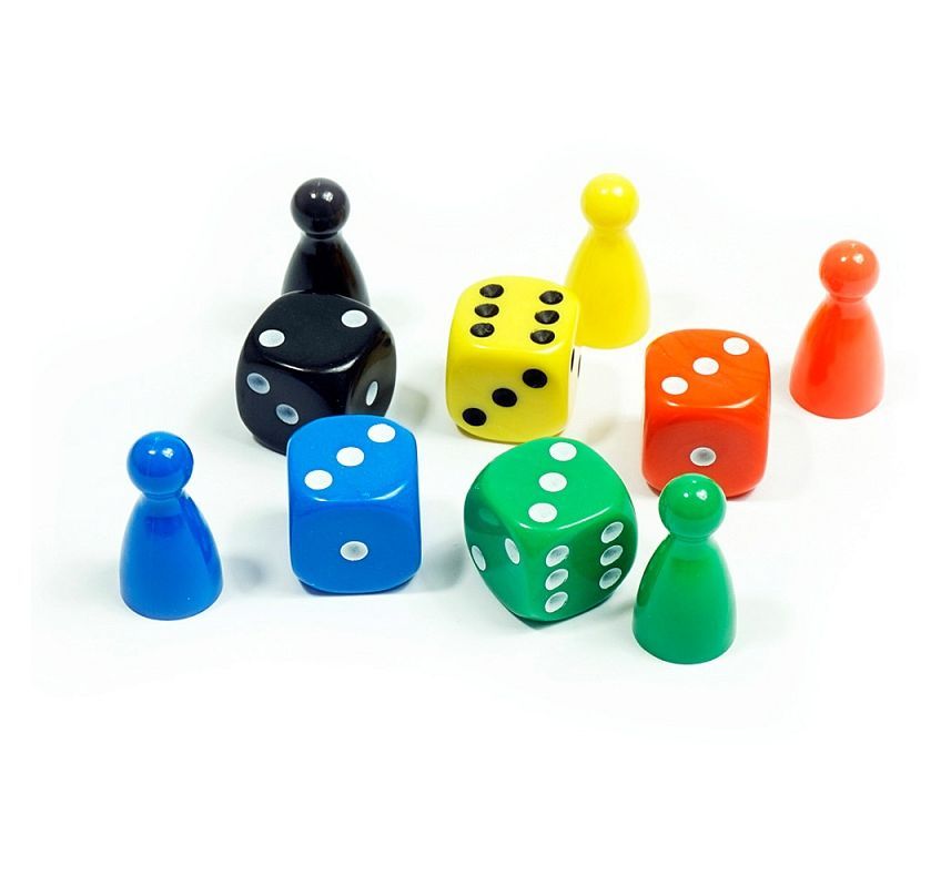 - 6 наборов с фишками и кубиками (по 10 шт.);