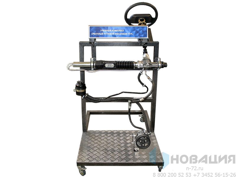 Стенд в напольном исполнении оснащается рулевым механизмом, который подготовлен к разборке и сборке. Рулевая система вращается. С помощью учебного комплекта пользователь изучает принципы функционирования автомобиля, техническое обслуживание, диагностирование.