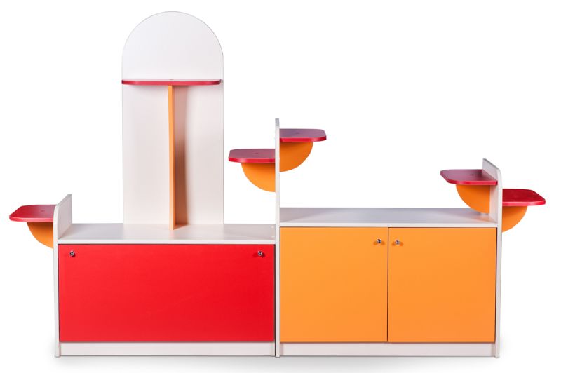 Это изделие отлично подойдет для оформления уголка природы в детском саду. В уголке природы предусмотрены полочки для цветов и для установки аквариума или клеток с животными. Яркий дизайн уголка природы не оставит равнодушными ни взрослых, ни детей.