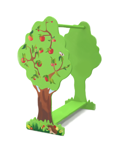 В уголке ряжения хранятся костюмы для выступлений, производится примерка. Перекладина закреплена между 2-мя панелями с изображением дерева. Внизу полочка для обуви или пакетов с реквизитом.