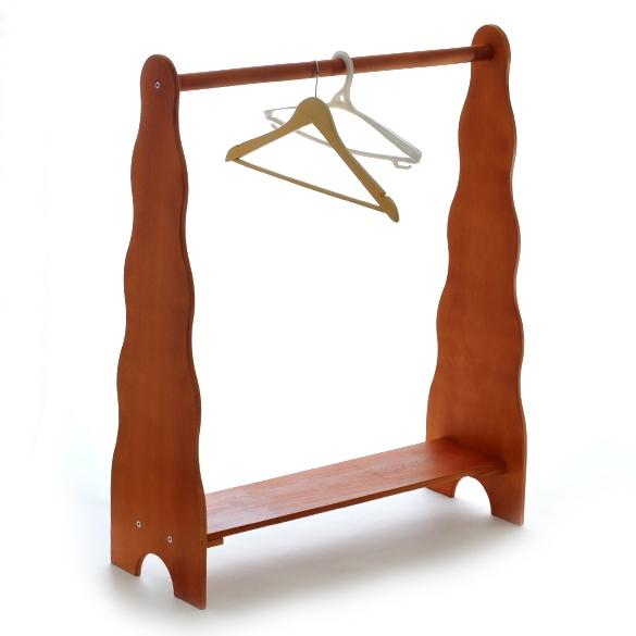 Вешало с нижней полкой позволяет хранить одежду и обувь. Перекладина закреплена между фигурными боковыми панелями (по 2 ножки, волнообразные края).