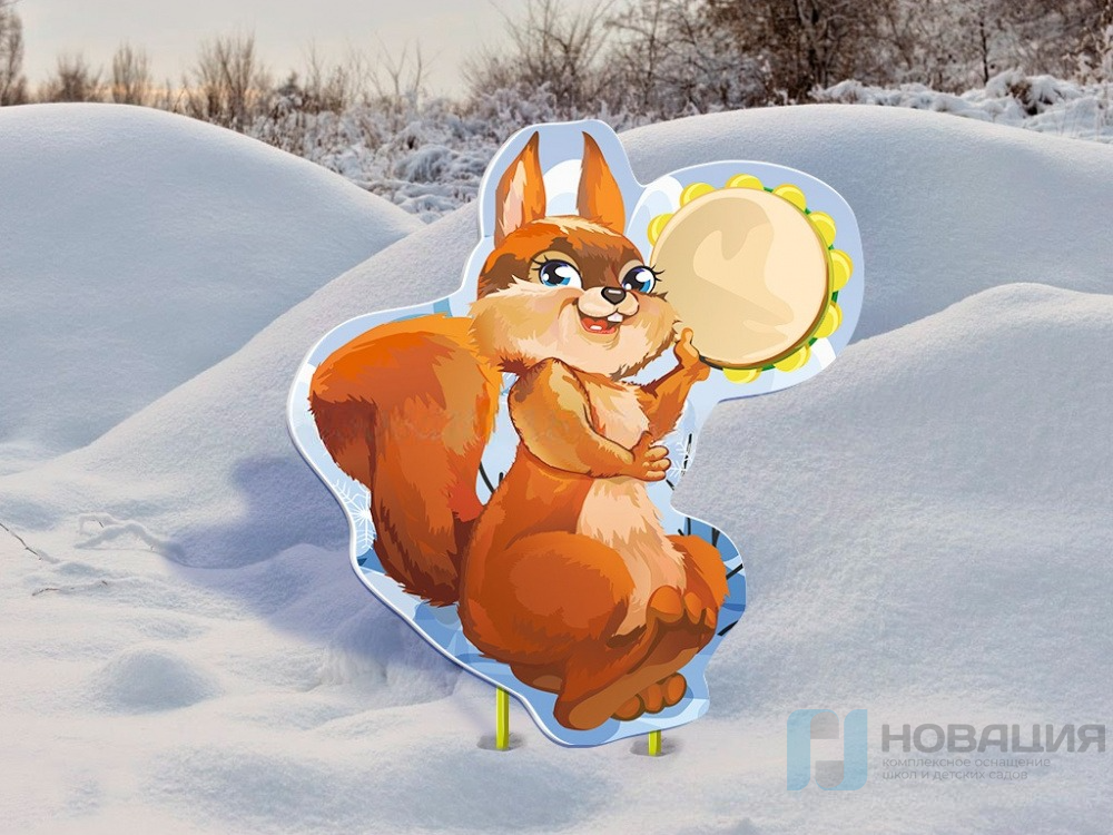 Полноцветная фигура выполнена в виде белочки с барабаном. Покрыта защитной пленкой. Монтируется в грунт при помощи металлических стоек и крепежа (входят в комплект).