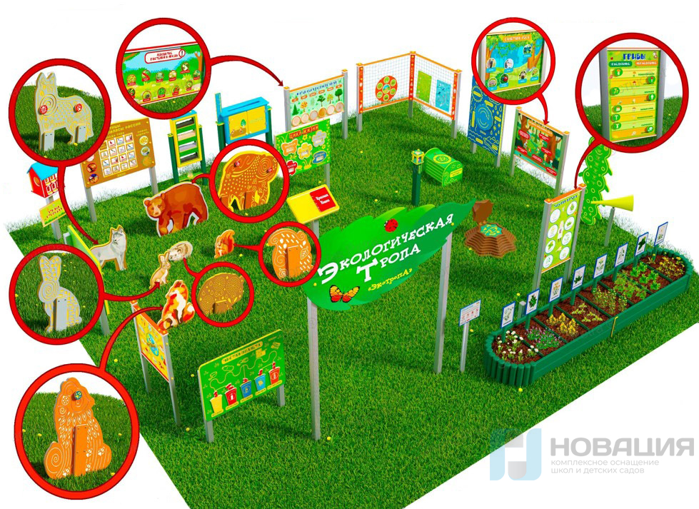 Экология - является главной тематикой площадки. Поможет детям изучить мир животных, птиц, насекомых и растений. На панелях расположена информация об окружающем мире и игровые элементы. Огорожена заборчиком для безопасности.
