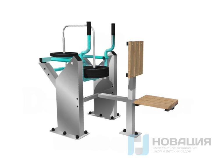 Тренажер для занятий воркаутом помогает укрепить плечевой пояс, пресс, мускулатуру спины, груди и рук. Нагрузка переменная, шаг 10 кг. Упражнения имитируют греблю. Установка с рычажной тягой подходит для детей ростом от 140 см.