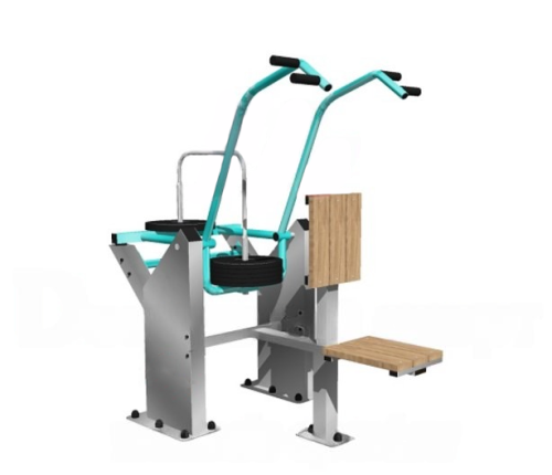 Тренажер для зоны воркаута поможет укрепить мышцы спины, груди и рук. Упражнения аналогичны подтягиванию на турнике. Нагрузка переменная, шаг 10 кг. Установка с вертикальной тягой подходит для детей ростом от 140 см. Предусмотрено 2 уровня хвата.