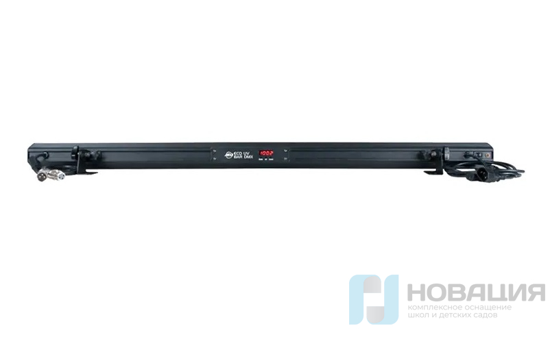 Представляет собой ультрафиолетовую световую панель с 18 светодиодами мощностью 3W. Предусмотрено 2 режима работы светильника: ручной и DMX-512. Оснащен входом и выходом IEC для гирляндного подключения питания, а также 3 DMX-каналами.