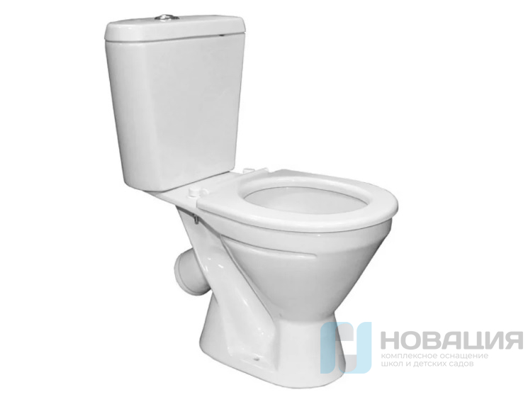 Детский унитаз для ясельной группы поставляется в белом цвете. Объем бачка составляет 3 л. Изделие с нижним подводом воды оснащается бесшумным кнопочным механизмом слива. Чаша защищена антибактериальным противоизвестковым покрытием.