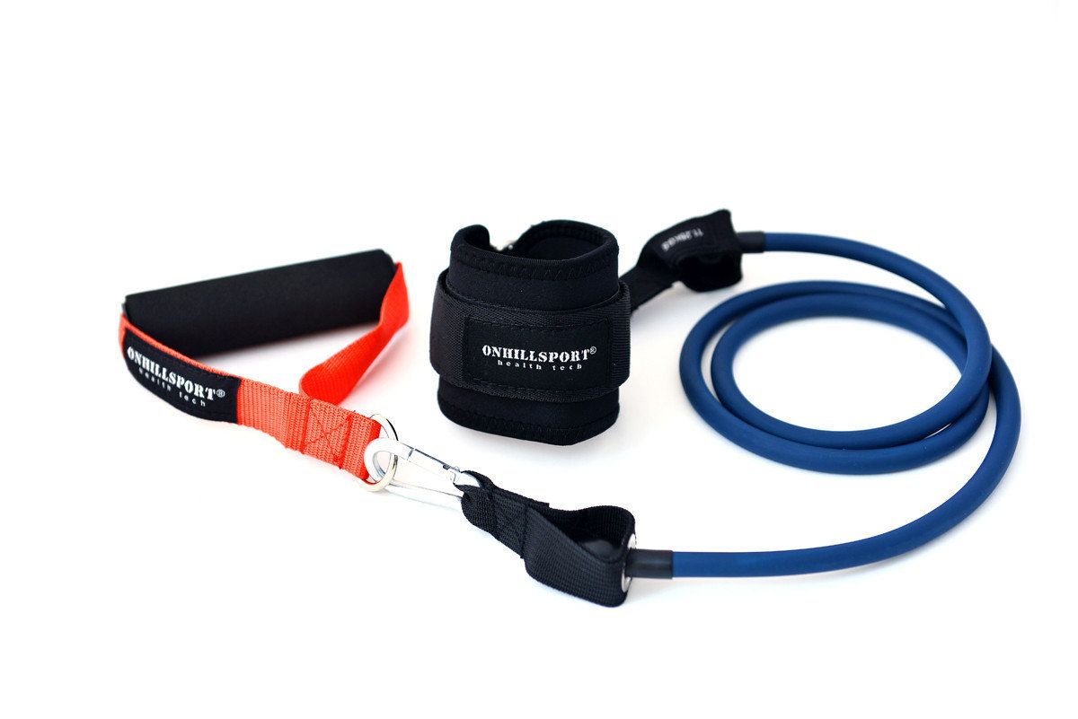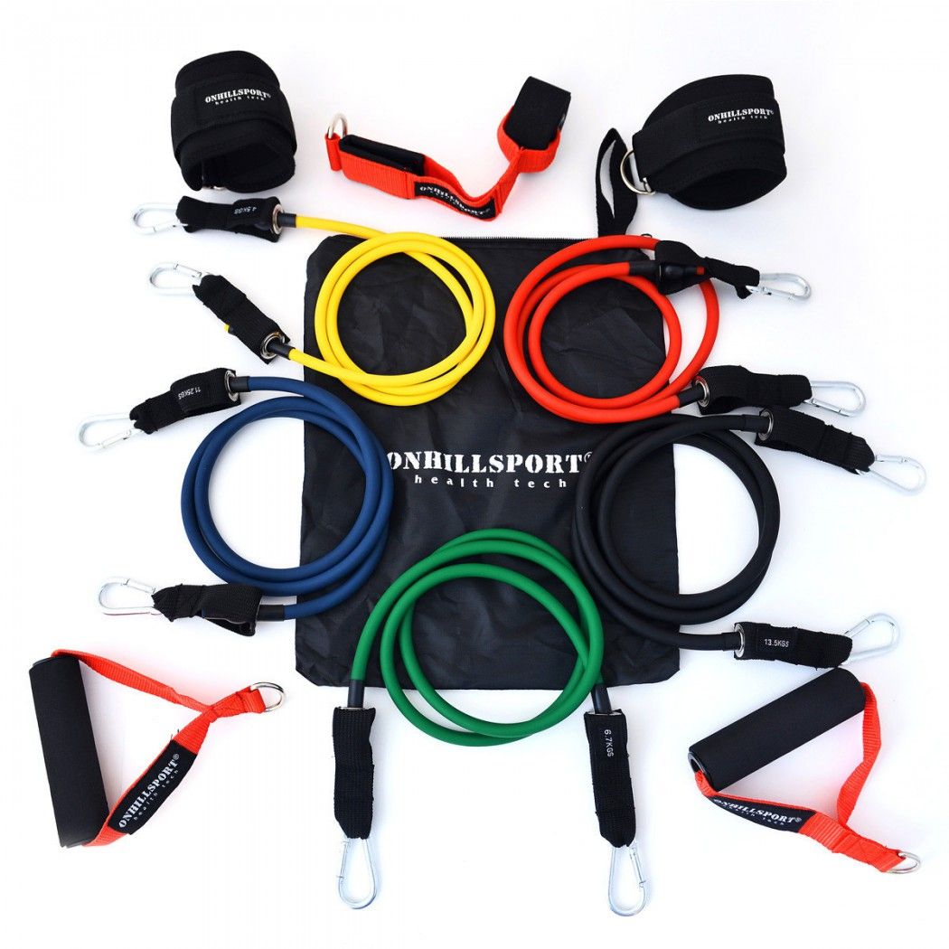 В наборе представлены трубки 5-ти цветов: желтый, красный, черный, синий, зеленый. Фиксатор каждой трубки выдерживает нагрузку до 90 кг. Рукоятки оснащаются мягким неопреновым покрытием. Манжеты для ног фиксируются благодаря липучкам.