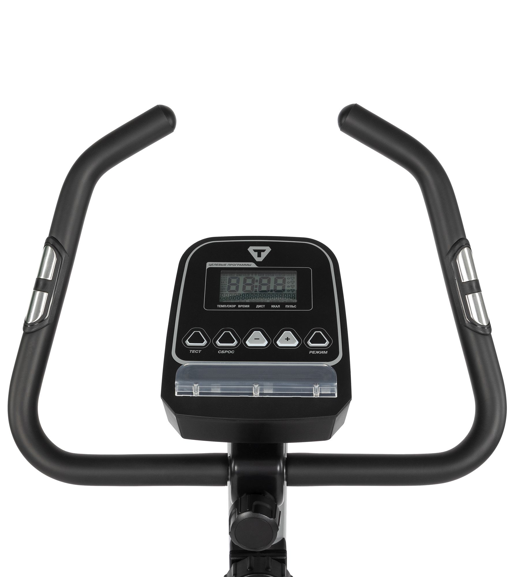Велотренажер для кардиотренировок оснащается горизонтальной и вертикальной регулировкой сиденья. В комплекте LCD-дисплей. Тренировочный компьютер фиксирует верхний предел пульса, скорость, расход калорий, время эксплуатации. Устройство подходит для целевой тренировки. Среди дополнительных функций: сканирующий режим, фитнес-тест, энергосберегающий режим.