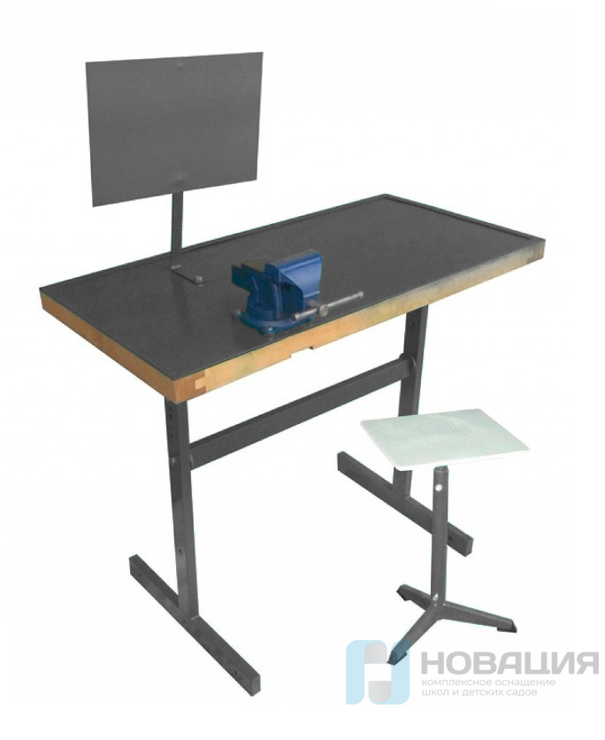 Основание поставляется в сером цвете. Предусматривается крючок для портфеля. Комбинированный стол используется учащимися 4-11 классов для сборочных, слесарных, монтажных и других видов работ.